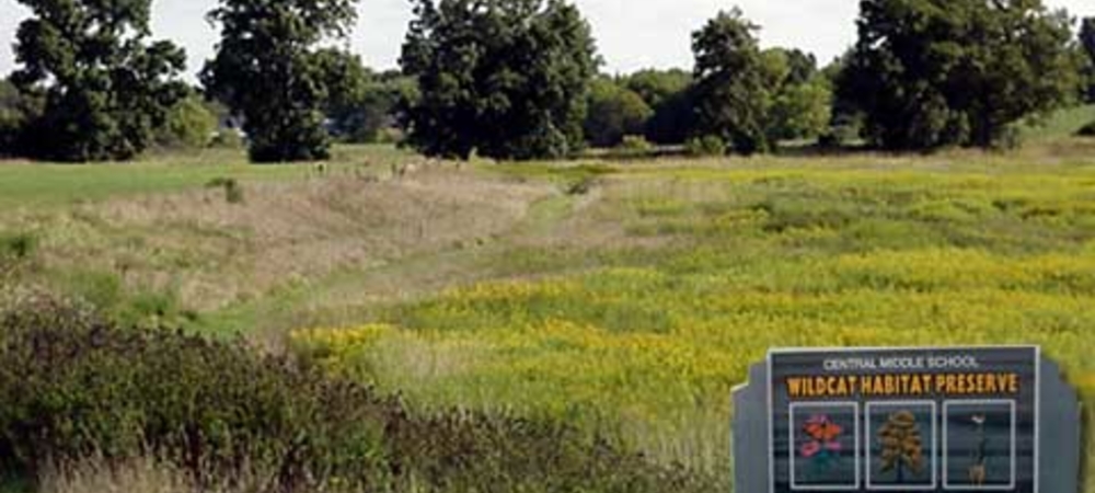 The Wildcat Habitat Preserve is a 57 acre site surrounding Central Middle School. It consists of an old farm field, drained wetlands, and a small wood lot. Restoration began with the excavating of four ponds in the wetland area. About three acres of upland and four acres of wetland have been planted in prairie. The small existing wood lot has been enlarged and another small wood lot begun.