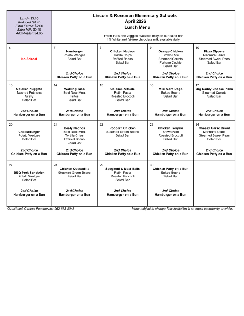 April - Lincoln/Rossman - Menu - Lunch