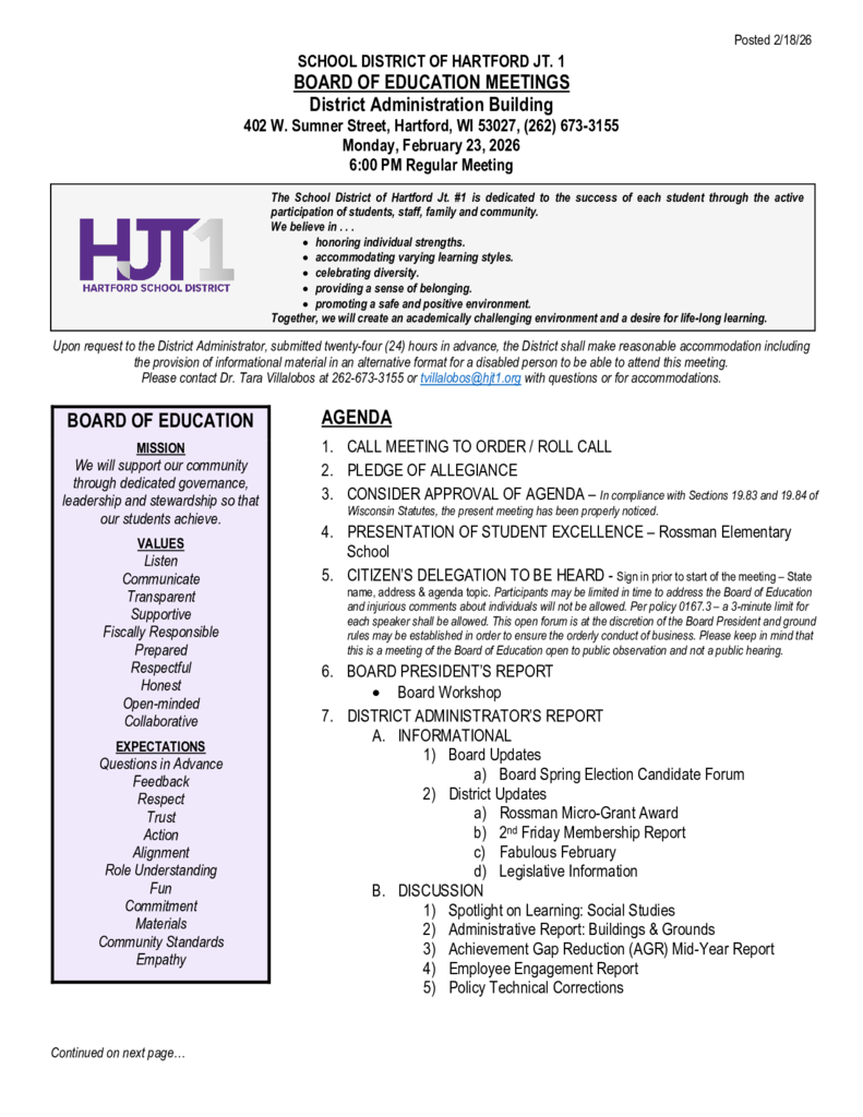 Board Meeting Agenda - February 23, 2026
