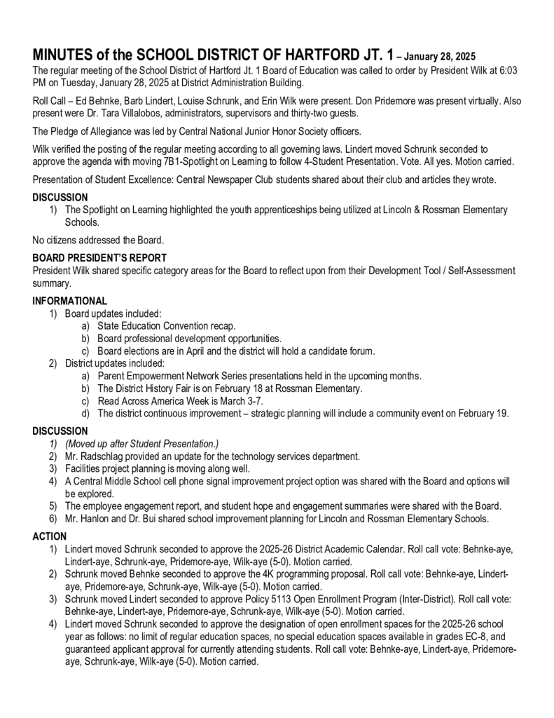 Board Meeting Minutes - January 28, 2025