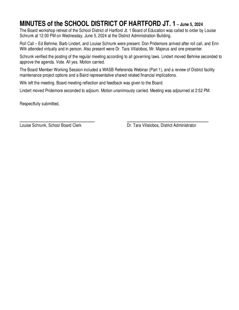 Board Workshop Minutes - June 5, 2024