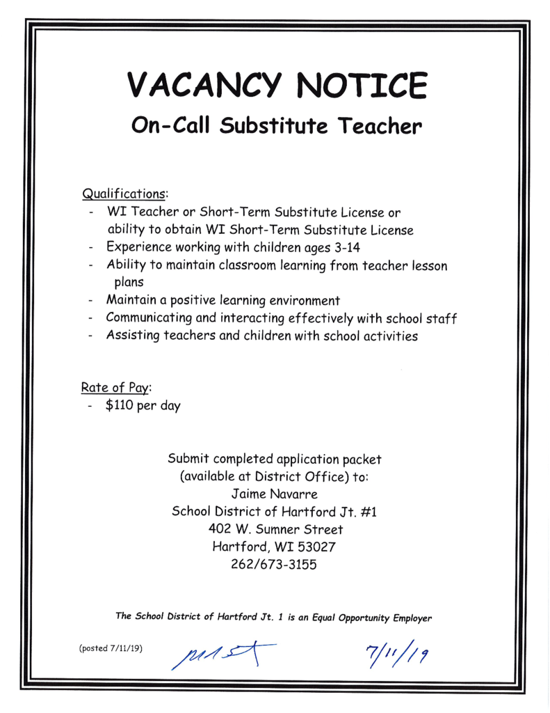 The School District of Hartford Jt. #1 is dedicated to the success of each student through the active participation of students, staff, family, and community.