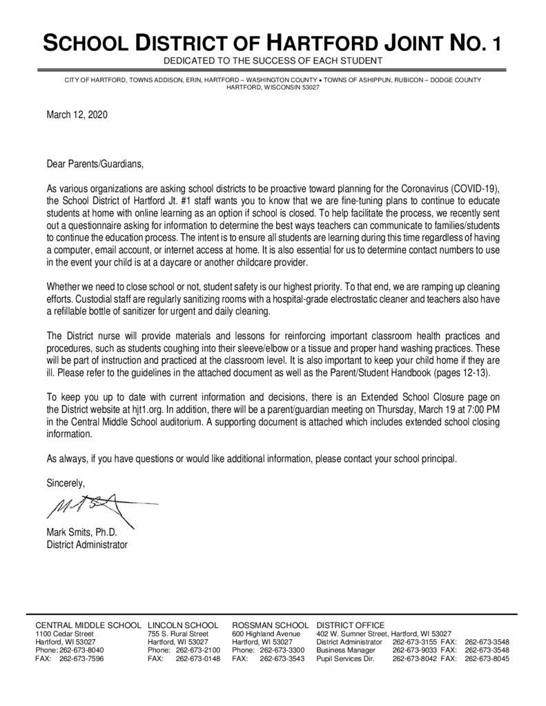 COVID-19 Parent Letter