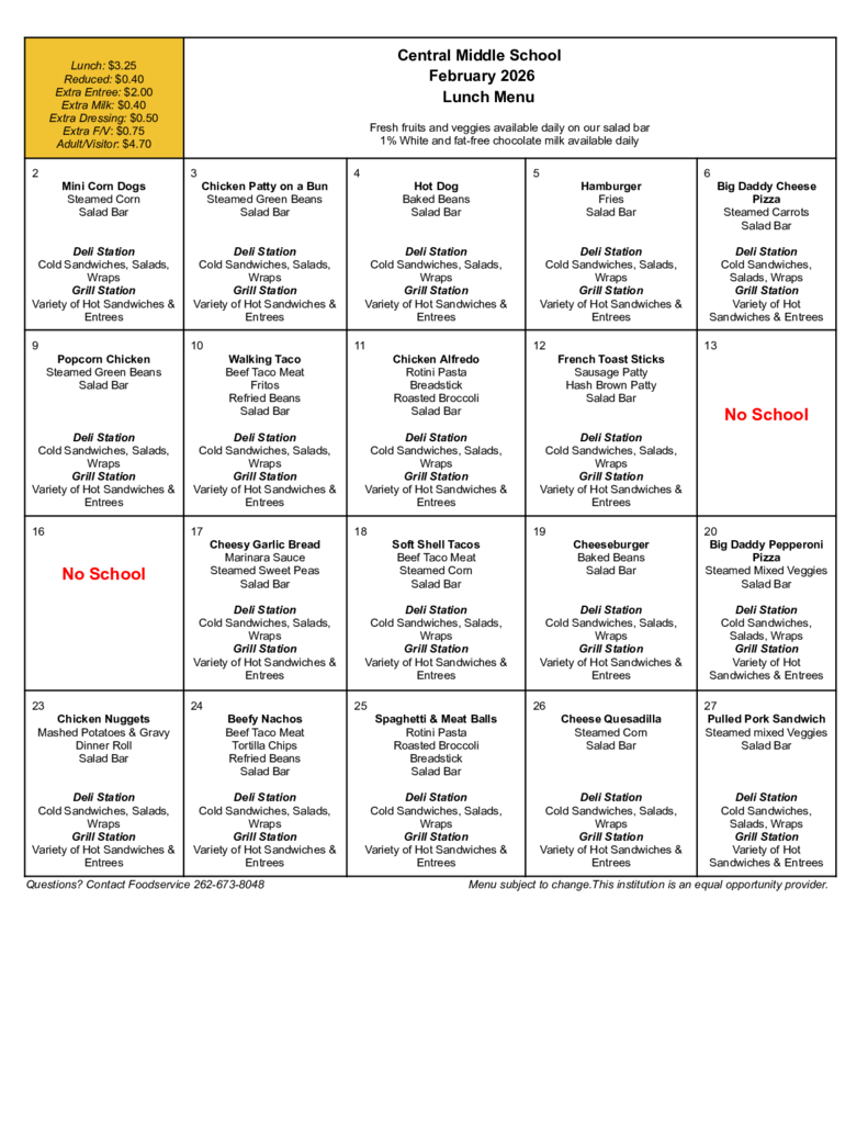 February - Central - Menu - Lunch