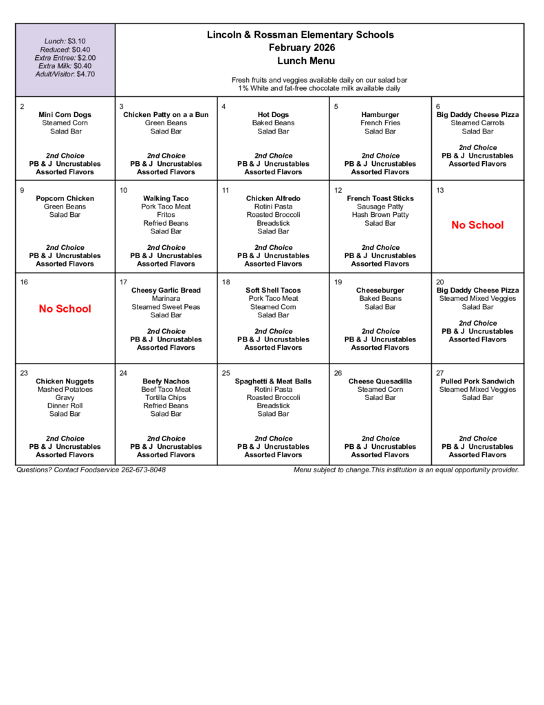 February - Lincoln/Rossman - Menu - Lunch