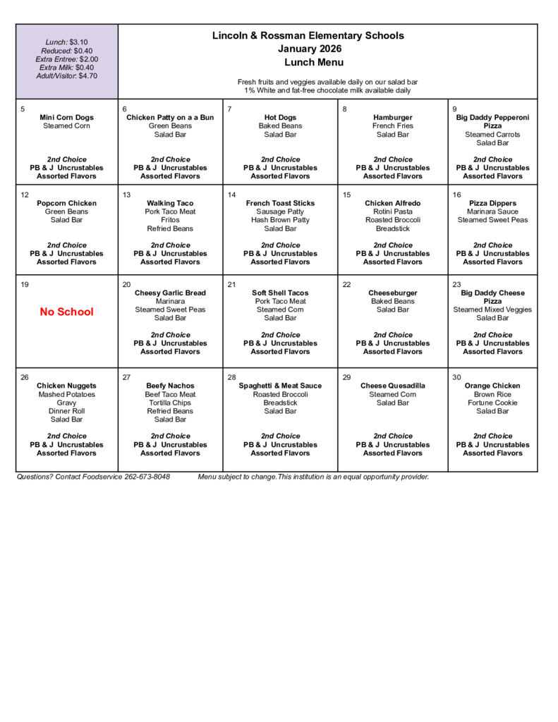 January - Lincoln/Rossman - Menu - Lunch
