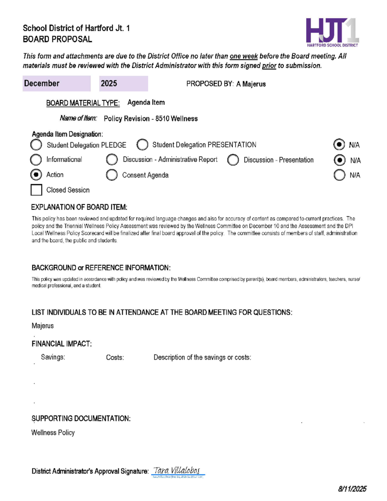 Policy 8510 Wellness