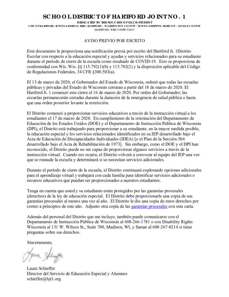 Prior Written Notice - Spanish