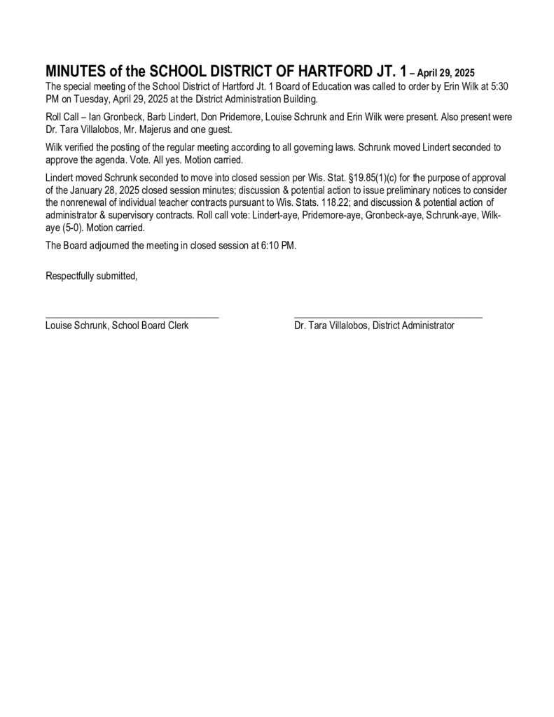 Special Board Meeting Minutes - April 29, 2025